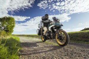 El depósito de 20 litros refuerza su vocación viajera, y el catálogo de accesorios incluye maletas y baúl perfectamente integrados en la línea de la moto. El bastidor tubular de acero va acompañado de suspensiones ajustables: horquilla invertida de 43 mm delante y monoamortiguador trasero, ambos regulables en precarga y rebote. Las llantas de radios sin cámara (19” delantera y 17” trasera) montan neumáticos de dibujo mixto, listos para salir del asfalto cuando se presente la ocasión.