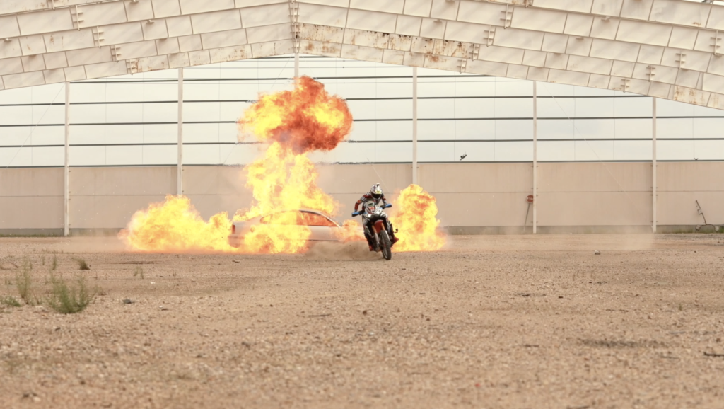 Que duda cabe que el nuevo escenario mantiene el nivel por todo lo alto, recreando imágenes propias de películas como ‘Misión Imposible’. Para esta entrega el protagonista ha querido jugar mucho con los elementos y obstáculos que ha ido introduciendo. “Creo que hemos conseguido nuestro objetivo de crear algo nuevo y único”, apunta Mirabet. “La toma más complicada fue la fila de coches ya que cada coche era diferente, con diferentes durezas de carrocerías y los cristales se rompían cada vez que movíamos los coches. Otra toma complicada fue la de la explosión porque solo había una oportunidad y salió impoluta”, avanza Kirian.